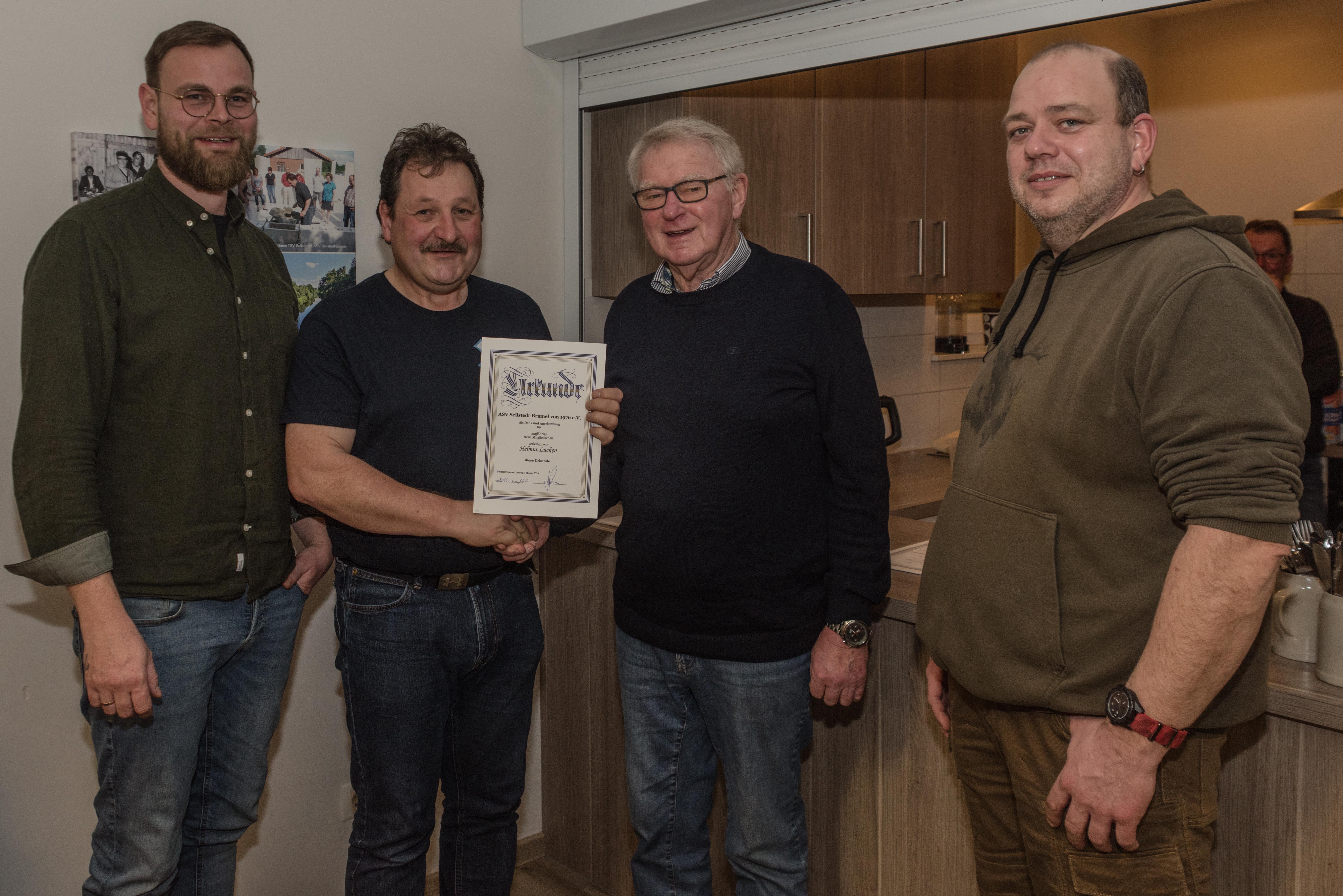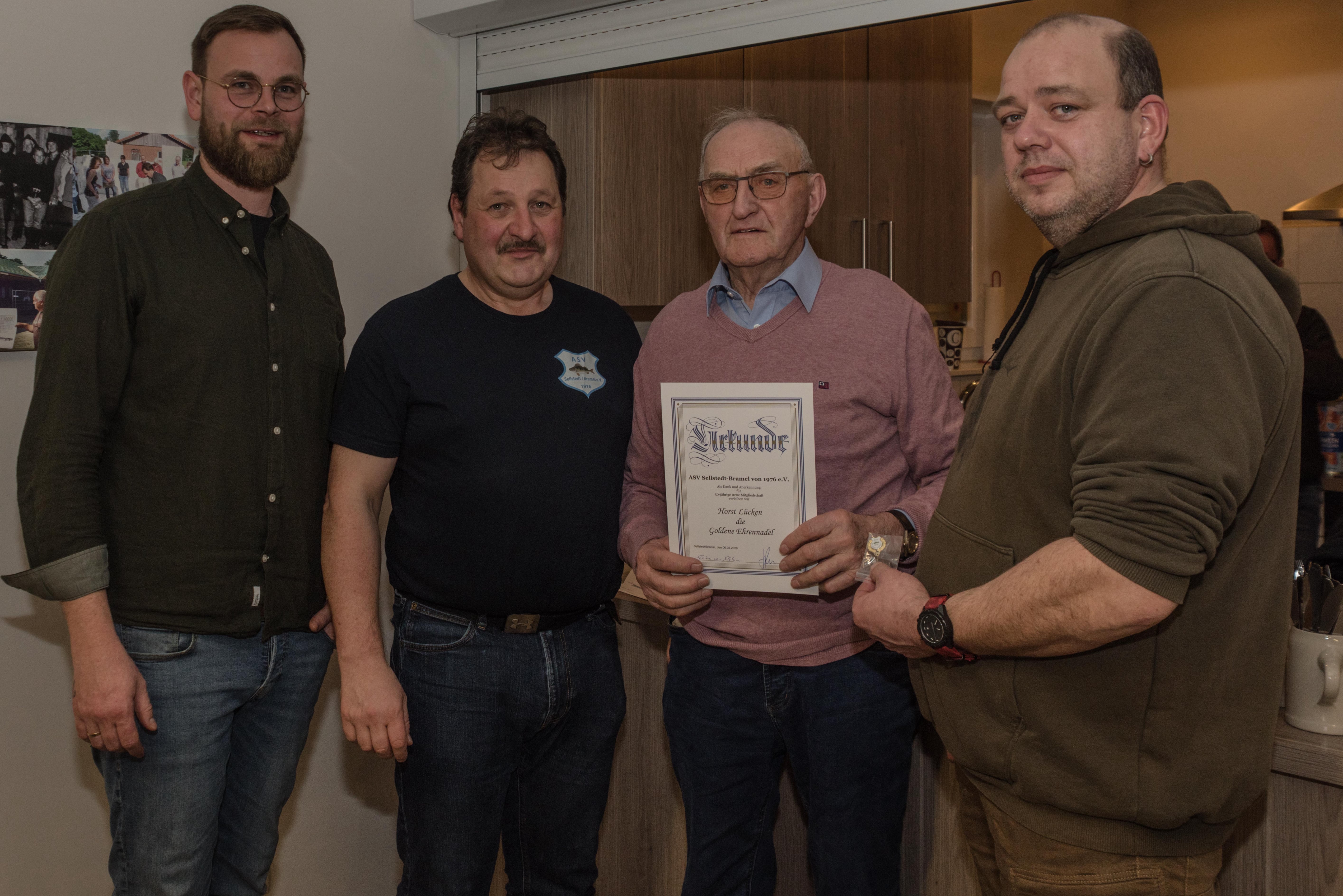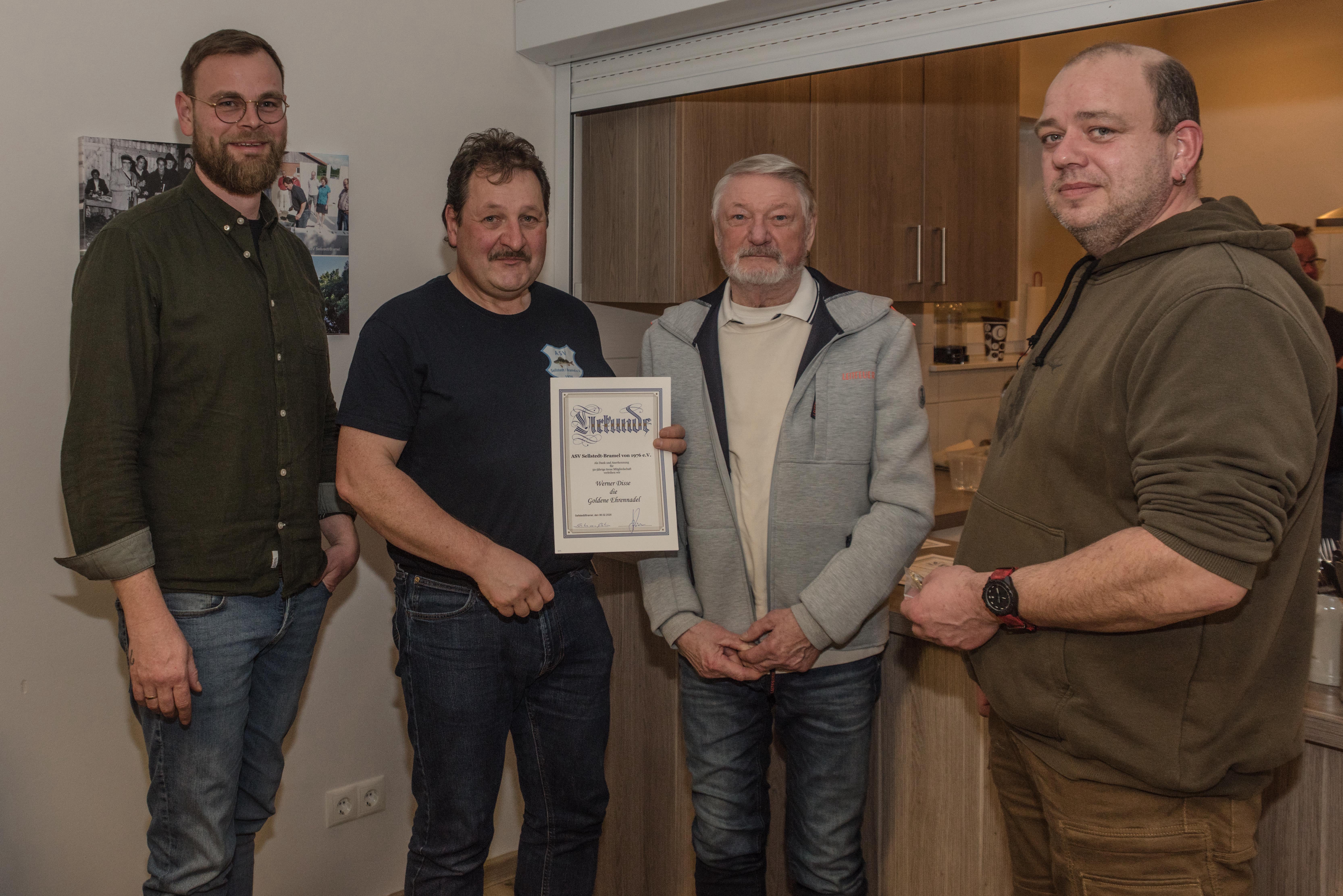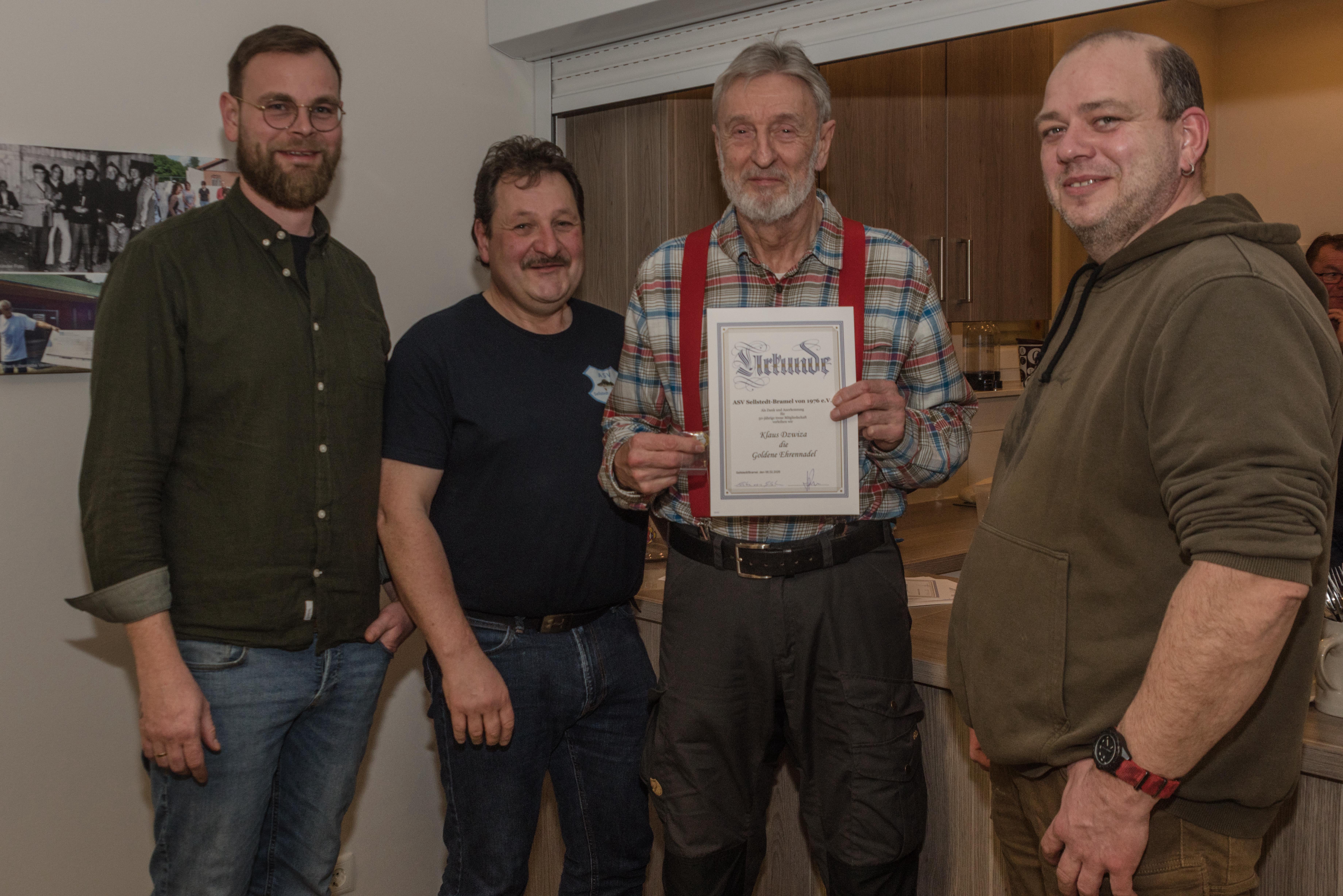 Wilfried Knuschke erhält seine Urkunde für 50 Jahre Angelsportverein Sellstedt/Bramel e.V.